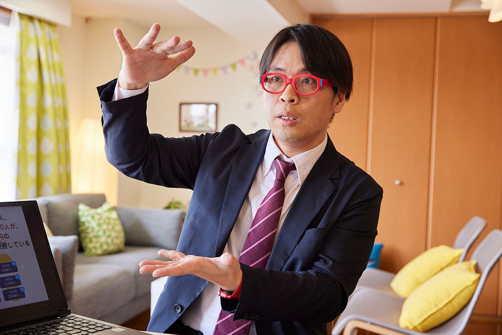 中川悠さんのトレードマークは赤いメガネ。社会の困りごとを解決するために日々奔走中。