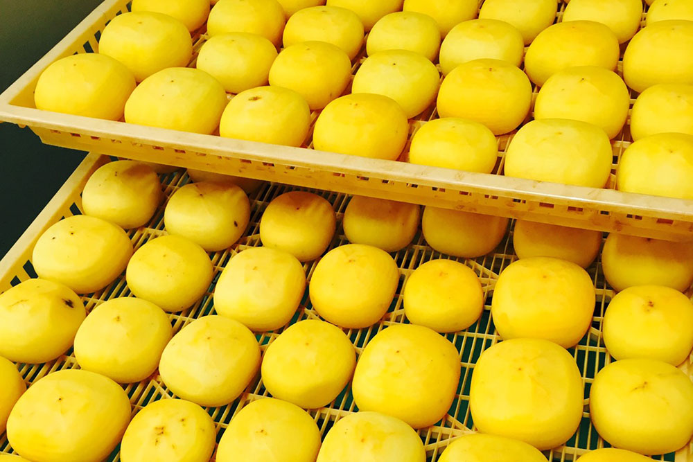 - それまでの農園経営では、成果物の収穫ができるのは1年の約半分。堀内さん曰く、それ以外は「見えない仕事をやっている」のだとか。開墾や土壌の改良など、多岐に渡ります。収入面においては、1年の半分は何もない状態ながら、固定費等の出費はしっかりとかかってくるという現実。柿のジャムやカリンのシロップなど少しずつ加工品のラインナップを強化することで収入の下支えに取り組んできたそう。富有柿のドライフルーツの開発は、保存期間が長く、常温で扱えることから従来の販路以外にアパレルショップなどでの取り扱い先が一気に広がりました。